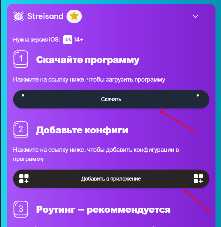 Установите приложение Streisand